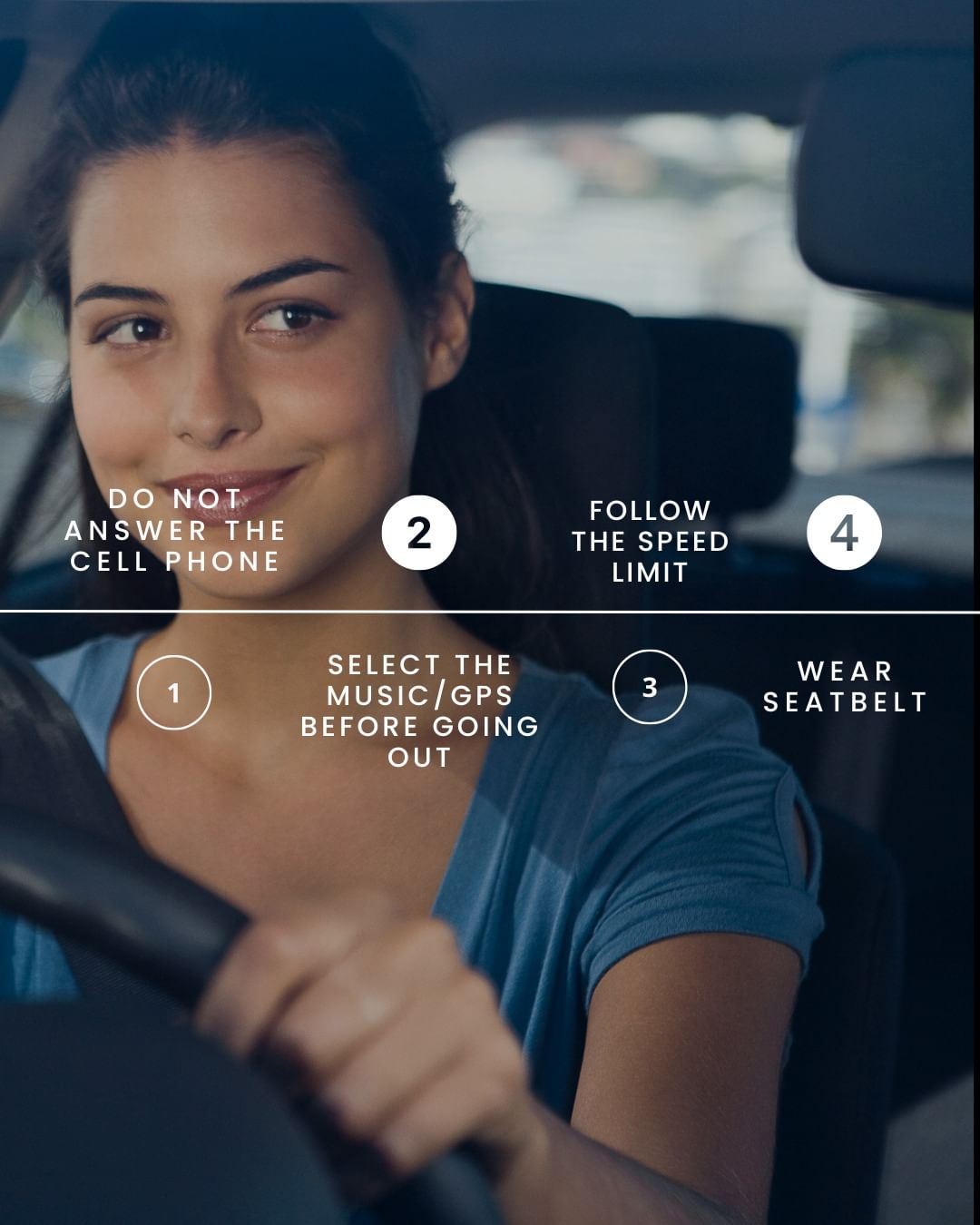 1. Always wear your seatbelt and make sure all passengers do the same.