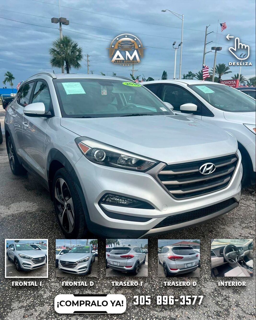 ¡Llévate la experiencia de manejo de un Hyundai Tucson 2016 con solo 12,300 millas recorridas! ???????? En AM Cars Advisor, hacemos que sea fácil cumplir tus sueños de tener un auto nuevo. Con solo un 20% del costo total, esta oportunidad es imperdible. No importa tu estatus legal, ¡solo necesitas tu pasaporte y una cuenta bancaria! Descubre por qué somos la mejor opción en Florida, con el lote más grande de autos nuevos y usados. ¡Aprovecha esta oferta única y hazte con tu Tucson hoy mismo! #HyundaiTucson #UsedCarsMiami #AMCarsAdvisor #FloridaAutoSales #CarDeals #Hyundai #MiamiCars #CarSale #AutoFinance #MiamiLife #DriveMiami #CarOwnership #DreamCar #CarShopping #MiamiDealership #HyundaiUSA #CarOffer #AffordableCars #CarDeal #MiamiCommunity #CarLovers”