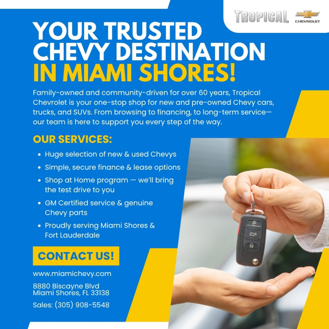 Tropical Chevrolet in Miami Shores has been family-owned, community-driven, and customer-focused for over 60 years.