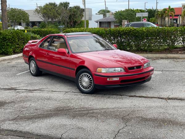 1991 Acura Legend coupe rare manual transmission survivor car in amazing condition with factory original paint. All original components down to the factory AM/FM cassette radio and factory original floor mats (front and rear). Final generation and one year only paint color (This specific shade of red was only available by Acura for the 1991 model year). Runs and drives great with cold AC. Bone stock original with owners manual and other factory documentation. Car is in beautiful condition and still has the factory spare and jack kit still located in the trunk. The back quarter panel windows go up and down smoothly and the automatic soft touch/soft close doors still work amazingly as well as the factory antenna and sunroof. Very clean example of Legend plus the interior is like new and turns heads whenever she goes. Please contact me for more information.