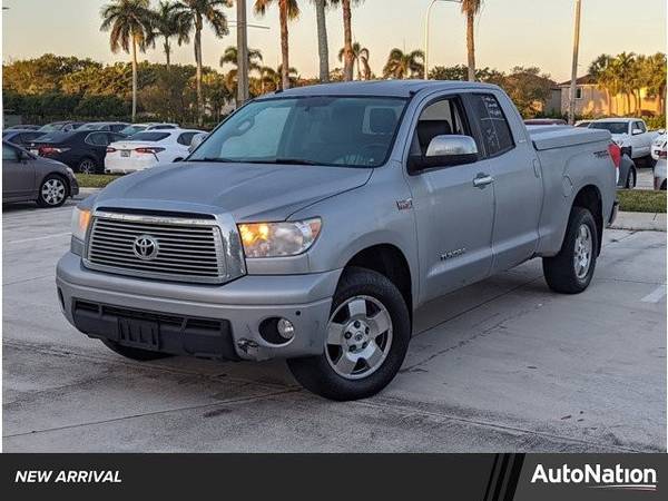 * Leather Seats * 4-Piece Carpet Floor Mats W/Door Sill Protector * Alloy Wheel Locks * Spare Tire Lock * Trd Off-Road Pkg * Daytime Running Lamps * 50-State Emissions * Graphite; Leather Trim * Silver Sky MetallicThis vehicle includes a Money-Back Guarantee* and passed our precise inspection process. Best of all the price you see is the price you pay. No haggling. No back and forth. No pressure. And this price is so good it is guaranteed. *Money-Back Guarantee is valid for 5 days or 250 miles, whichever comes first. Subject to certain terms and conditions. See store for details. Some restrictions apply.AutoNation Toyota Weston has a wide selection of exceptional pre-owned vehicles to choose from, including this 2011 Toyota Tundra 4WD Truck. This vehicle is loaded with great features, plus it comes with the CARFAX BuyBack Guarantee. Sophistication & understated luxury comes standard on this Toyota Tundra 4WD Truck LTD. Well-known by many, the Tundra 4WD Truck has become a household name in the realm of quality and prestige. Taking the road less traveled has never been more fun than with this 4WD. With improved performance, mileage and acceleration, this 2011 4WD Toyota Tundra 4WD Truck LTD is king of the off-road. Low, low mileage coupled with an exacting maintenance program make this vehicle a rare find. More information about the 2011 Toyota Tundra 4WD Truck: The 2011 Tundra CrewMax has best-in-class legroom according to Toyota, and offers the only reclining and sliding rear seat among pickups. The Tundra also offers one of the best-designed interiors, with plenty of storage space and easy access to the backseat area. The available 5.7L engine makes 381 horsepower and 401 lb-feet of torque, with hauling and towing ability near the top of the segment. Safety is also a strong selling point, as Tundra is the first full-size pickup to have stability control, front side airbags, front seat knee airbags and rollover-sensing side-curtain airbags standard across the model line. Interesting features of this model are Safety features, thoughtful interior design, V8 performance with optional 4.6L and 5.7L engines., and towing and hauling ability