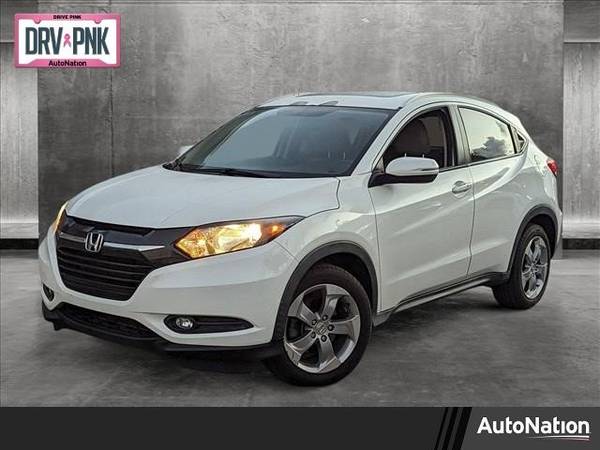 * Moonroof * Leather Seats * Navigation System * Keyless Start * Rear Spoiler * Gray; Leather Seat Trim * White Orchid PearlThis vehicle includes a Money-Back Guarantee* and passed our precise inspection process. Best of all the price you see is the price you pay. No haggling. No back and forth. No pressure. And this price is so good it is guaranteed. *Money-Back Guarantee is valid for 5 days or 250 miles, whichever comes first. Subject to certain terms and conditions. See store for details. Some restrictions apply.This 2017 Honda HR-V EX-L Navi is proudly offered by AutoNation Honda Hollywood This Honda includes: WHITE ORCHID PEARL GRAY, LEATHER SEAT TRIM *Note – For third party subscriptions or services, please contact the dealer for more information.* Drive home in your new pre-owned vehicle with the knowledge you’re fully backed by the CARFAX Buyback Guarantee. If you’re going to purchase a pre-owned vehicle, why wouldn’t you purchase one with CARFAX one-owner report. This SUV is a superb example of what a tough, work focused vehicle should be. Exceptional towing, acceleration and torque will help you get the job done. The greater your fuel-efficiency, the less your carbon footprint. And with exceptional MPGs, this Honda HR-V treads ever so lightly on Mother Earth. One of the best things about this Honda HR-V is that it has low, low mileage. It’s ready for you to truly break it in. Find the quickest driving route in this Honda HR-V EX-L Navi using the installed navigation system. This nav system is one of the easiest to use and will help get you where you need to go quickly! This vehicle includes important services and maintenance records, so you can feel more confident about your buying decision. More information about the 2017 Honda HR-V: The Honda HR-V represents an excellent value, giving customers plenty of upscale amenities as standard, while also offering as much interior room as some mid-sized SUVs. Despite being remarkably big on the inside, its compact dimensions mean that it’s a practical vehicle to own for city dwellers. The HR-V competes with other compact crossovers such as the Chevrolet Trax, undercutting compact SUVs such as the Toyota RAV4 and the Nissan Rogue with a lower base price and better fuel efficiency. Strengths of this model include Efficient packaging, available all-wheel drive, compact dimensions, efficient engine, and competitive pricing