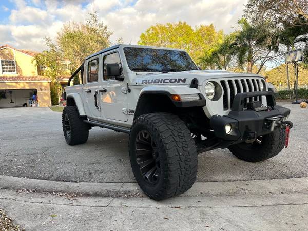 RUBICON With LOCKING DIFFS YEAR: 2021 COLOR: White TRIM: SoFlo Custom LIFT: Rubi TIRES: 38 RIMS: Fuel Assault HOOD: Rubi BUMPER: SoFlo Stubby Steel with Winch SIDESTEPS: Steel HEADLIGHTS: 9 Halo SPECIAL FEATURES: Aluminum Rollcage Covered in Armor, 8.4 Touch Screen WEATHERPROOF INTERIOR: Black WHAT MAKES THIS TRUCK SPECIAL: Awesome price for a white Gladiator Rubicon for an insane price. CALL US OR COME SEE THESE CUSTOM TRUCKS IN PERSON Location 1: 1430 W Broward, BLVD Fort Lauderdale, FL 33312 (561) 941-9200 Location 2: 2720 Okeechobee BLVD West Palm Beach, FL 33406 (561) 941-9200 NEW E-PURCHASE SYSTEM – Customers never have to leave the comfort of their home couch to purchase a SoFlo Jeeps or Apocalypse 6×6 truck. We offer online payment, financing and video walkarounds. We ship our trucks worldwide to any and every location. Have a trade-in? Not a problem at all, as WE ACCEPT TRADE-INS NATIONWIDE AND YOU NEVER PAY TO SHIP IT. We make buying and receiving your dream truck beyond simple. ****ALL PIPE DOORS ARE EXTRA AND NOT INCLUDED IN PRICE OF THE TRUCK**** ****ALL VEHICLES COME WITH ORGINAL FACTORY DOORS AND ROOF****